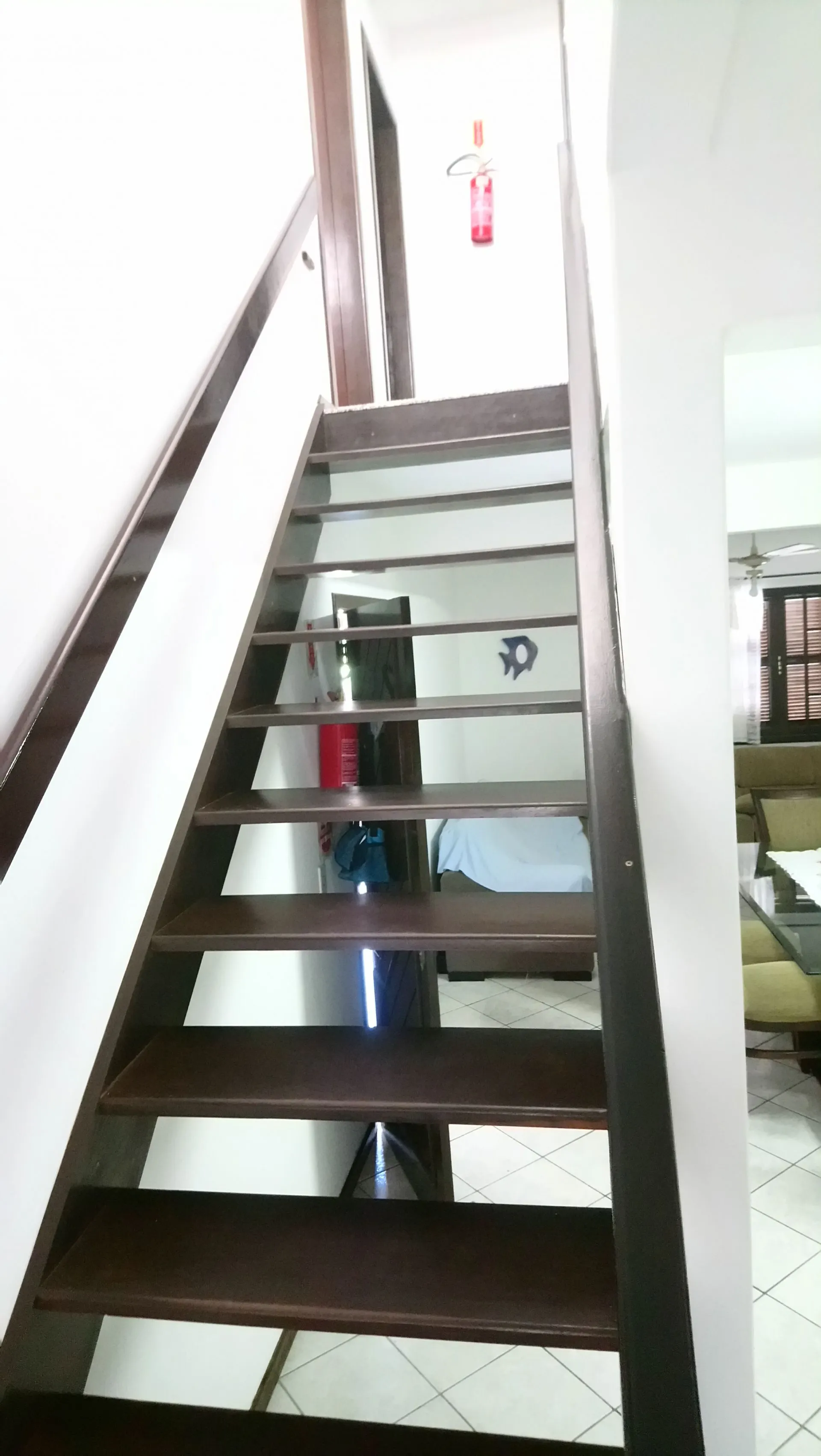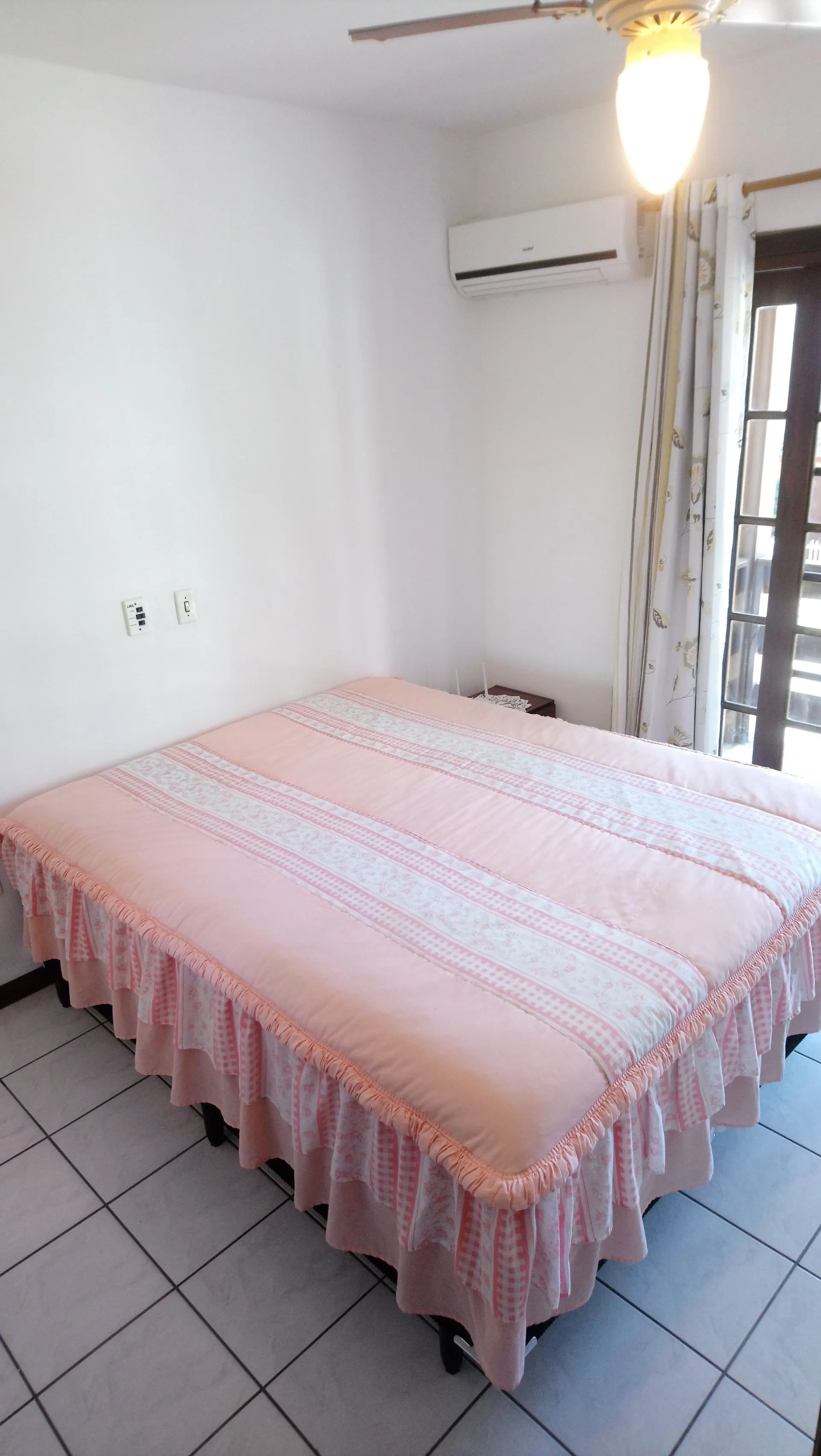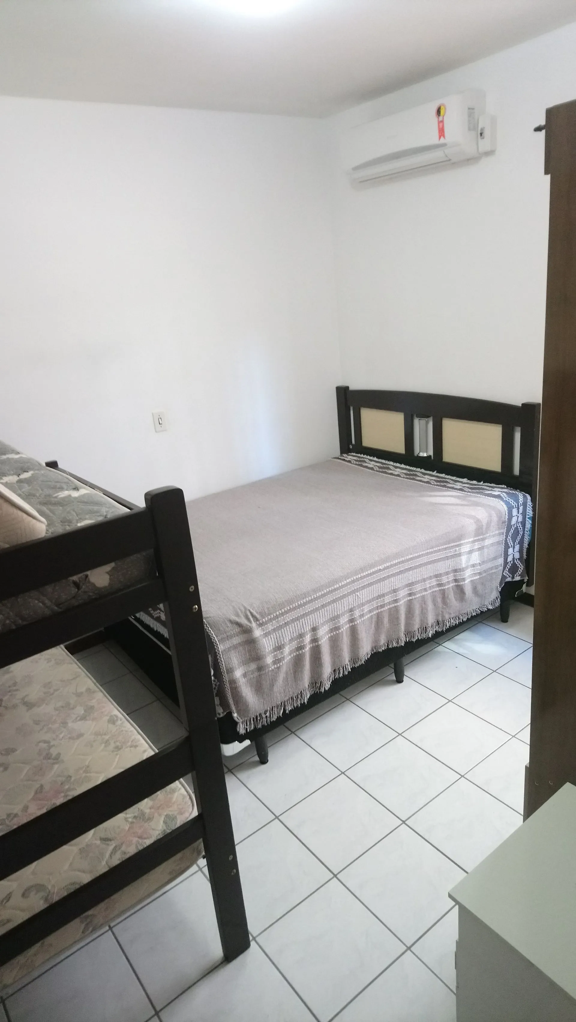 02 dormitorios de casal c/ ar-condicionado, sacada, (sendo que um deles é suite), 01 dormitorio com 01 beliche e 01 cama de casal, ar condicionado, mais 01 banheiro e 01 lavabo, cozinha, garagem fechada para 01 carro e estacionamento ao ar-livre p/ mais 02 carros pequenos, churrasqueira. Trazer roupa de cama, mesa e banho, cadeiras de praia e guarda-sol.